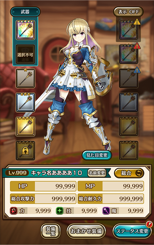 ゲームアプリ内の装備変更、スキル設定と同等の機能がWEB上でも使えるシミュレーターを現在準備中です。